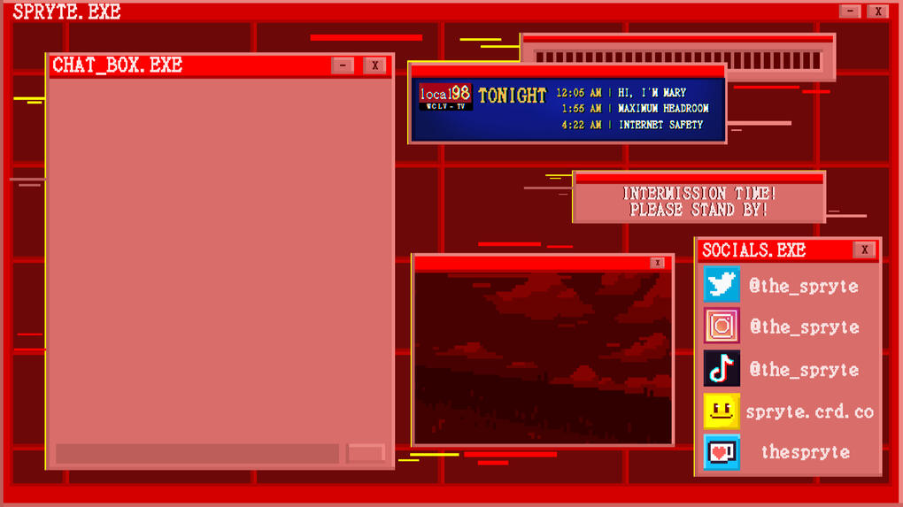 salutations! my name is spryte! i'm a horror variety vtuber, artist and musician!I started twitch streaming in may of 2021, being inspired by my favorite content creators and friends.I specialize in webcore/eye strain art and SNES style of music.